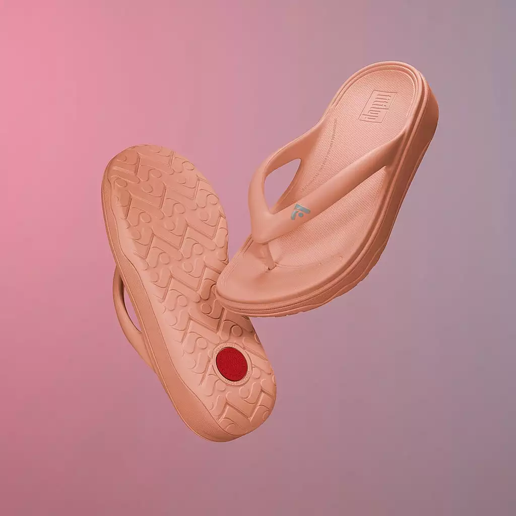 RelieFF – and total TLC – for tired post-activity feet. This transformative sandal is 360° of comfort. For the first time in a FitFlop adult style, both the upper and midsole are crafted in EVA foam, for all-over softness, lightness, flexibility and cushion in the extreme. Combined with energy-efficient ergonomics throughout, so your feet don’t work harder than they have to when walking. All aimed at helping your body recover faster to its original baseline state after physical activity – whether that’s a run, workout, sports session, dance class, or just a day rushing around. On top, a one-piece injection-moulded EVA upper (strap and footbed) feels pillowy soft against your skin, gives an extra layer of squidgy cushion underfoot, and holds the foot to maximize contact with the biomechanically brilliant midsole. While its feather-lightness and flex minimize the energy you use. Underneath, our triple-density Microwobbleboard™ midsole works its magic: delivering supercomfort (it diffuses pressure, reduces impact, cushions non-stop, optimizes body alignment) and natural support, thanks to anatomical arch curves.